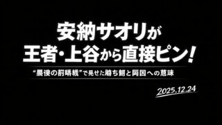 スターダム12.24後楽園メインで安納サオリがワールド王者・上谷沙弥から直接ピン。スペシャルポテリングで勝利し、12.29両国の王座戦へ弾みをつけた。